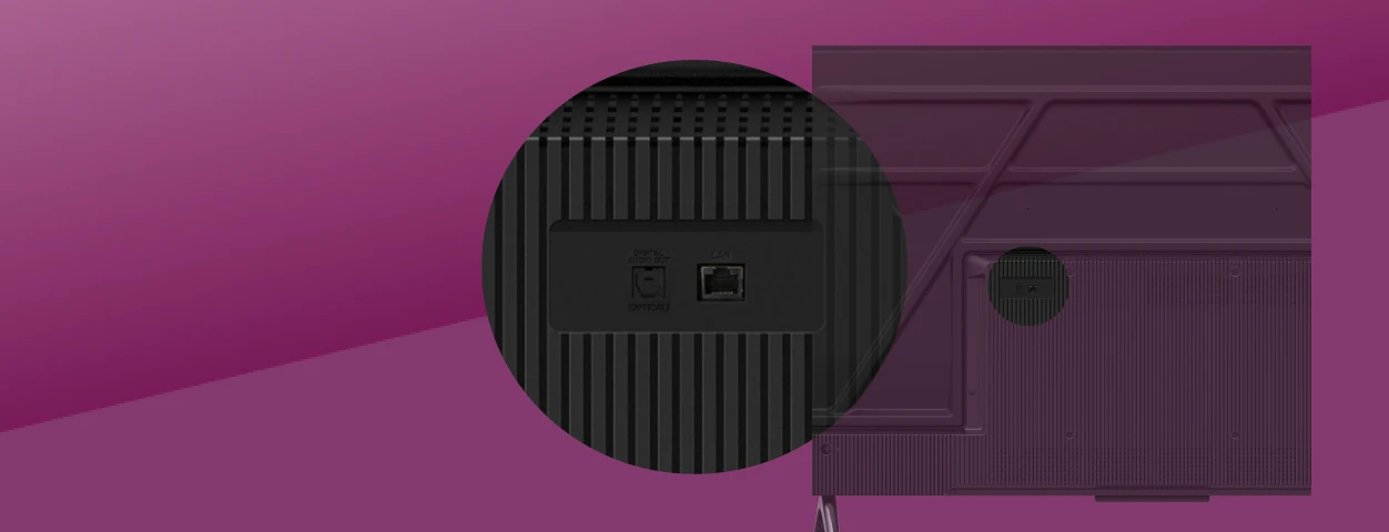 Aan de achterkant van het scherm vind je de volgende aansluitingen: Ethernet LAN, Optical Digital Audio Out.